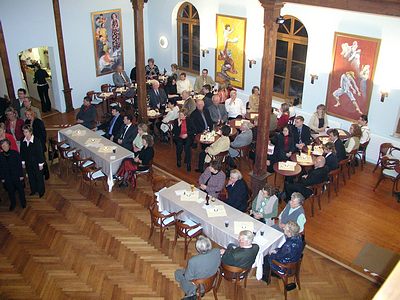 Trotzdem viele der Gäste schon einen hungrigen Blick zum Büfett warfen, mussten sie sich noch längere Zeit gedulden. Denn zunächst begannen die Abgesandten des sächsischen Hofes in ihren tollen Kostümen mit ihrem Programm. Erst nachdem es doch recht unruhig wurde, bat August der Starke zu Tisch. Und die königliche Tafel war wirklich aufs vortrefflichste angerichtet. Dafür möchten wir uns ganz herzlich bei Jens Puckler uns seinem Team bedanken!