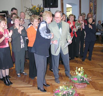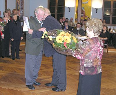 Im Anschluss an den Rechenschaftsbericht, vorgetragen von K. Glöss, wurden Christa Swiersy und Ralf Mulansky für die aktivste Teilnahme an den Singestunden ausgezeichnet.