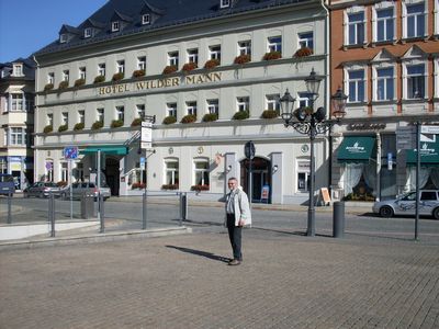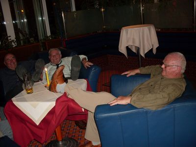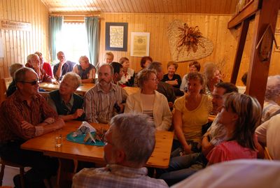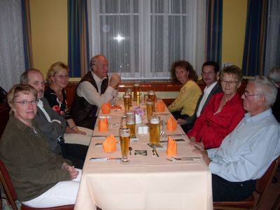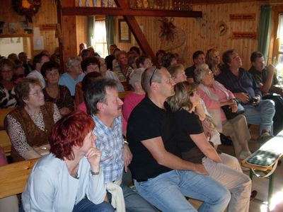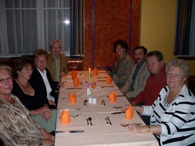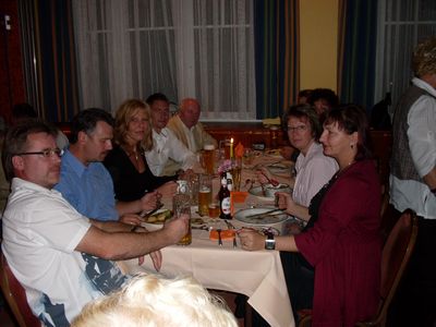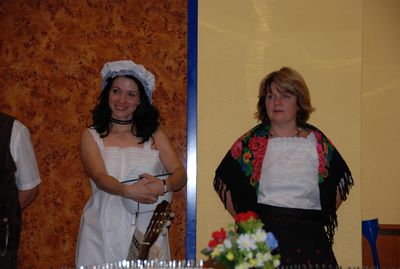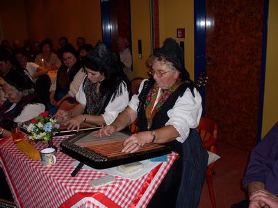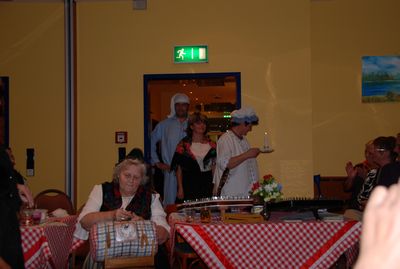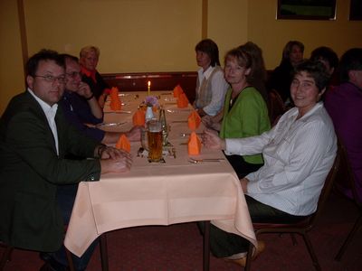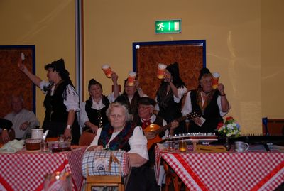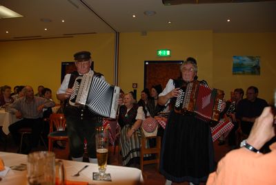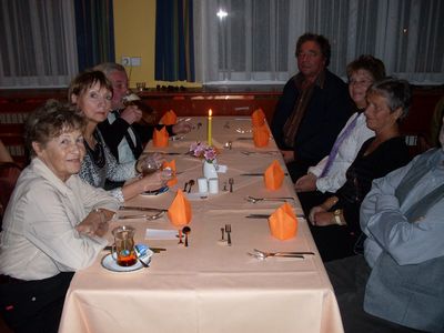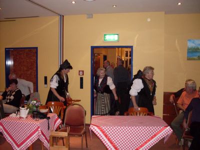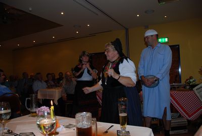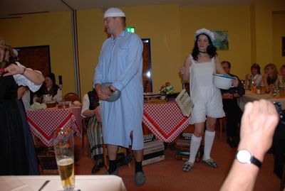 Und laut Maik (unserem Busfahrer) war das für diesen Tag der vorletzte Höhepunkt. Wie? - der letzte ist doch auf dem Hotelzimmer, wunderte sich Klaus, sollen wir gleich ins Bett? Aber nein. Erst wollten wir doch noch den schönen Hutzenabend im Hotel in Falkenstein genießen. Wir hatten das ganze Hotel für uns allein, denn mit zwei Chören war es restlos ausgebucht. Es war köstlich. Die vogtländischen "Maderl" klärten uns über das Leben früher, ihre Gepflogenheiten und die Kleidung auf. Mit Gedichten und Gesang und einer kleinen Modenschau unterhielten sie uns eine Stunde lang. Katrin und Achim B. erfreuten uns sogar als Model’s. Beide sahen in Tracht und Nachtkleid für den Herrn schick aus. Mit Gesang, Unterhaltung und Tanz klang der Abend dann so gegen 2 Uhr aus.