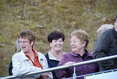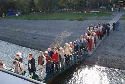 Unsere Mittagsrast verbrachten wir wieder in luftiger Höhe in Schöneck Der Nebel verzog sich und die Sonne zauberte die tollsten Farben in die Natur. Renate tischte die Rester auf und wir stießen mit Sekt auf unser gemeinsames Treffen an. Nach einem Gruppenfoto machten wir uns auf zum letzten gemeinsamen Erlebnis unserer Ausfahrt. Das schöne Wetter lockte uns an die Talsperre Pöhl zu einer einstündigen Schifffahrt. Wir unterhielten den Kahn mit unserer Musik. Hier konnte man noch einmal den Sommergedanken nachsinnen, denn die Talsperre ist ein beliebter Urlaubsort. Ob Camping, Bungalow oder einfach nur Baden, erholen kann man sich hier auf alle Fälle.
