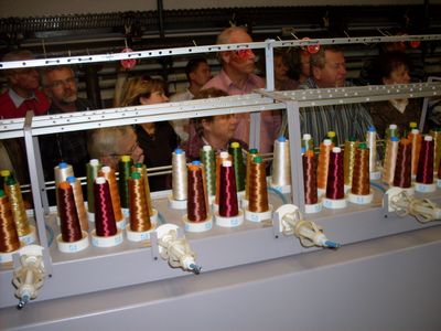 Am Sonntagmorgen nach dem Frühstück starteten wir in Etappen zur Spitzenstickerei in Hammerbrücke. Da diese Schauwerkstatt nicht so viel Platz für uns alle hatte, mussten wir versetzt fahren. Aber, was wir da zu sehen bekamen unterstreicht und rechtfertigt den Preis von Plauener Spitze. Noch von Lochbändern gelesene Muster, verarbeiteten die wirklich alten Maschinen die Informationen zu phantastischen Decken und Spitzen. Natürlich konnten viele Frauen den Geldbeutel nicht zu halten. Sie finden immer ein Deckchen oder ein Spitzenartikel für die gute Stube.