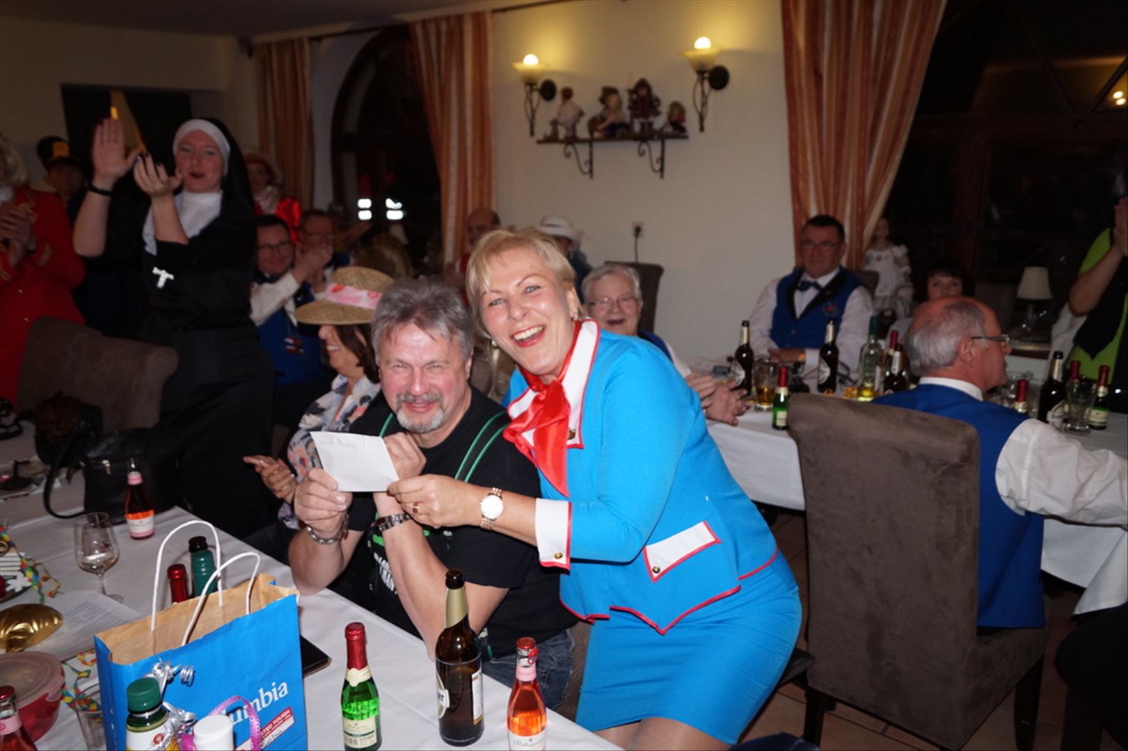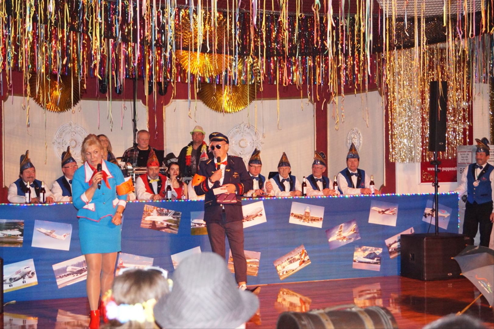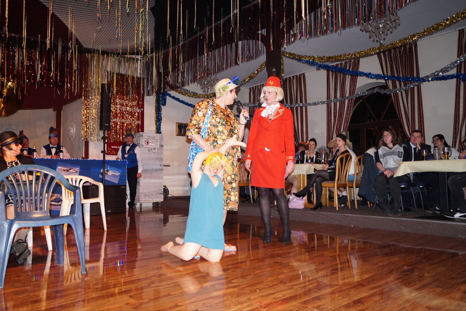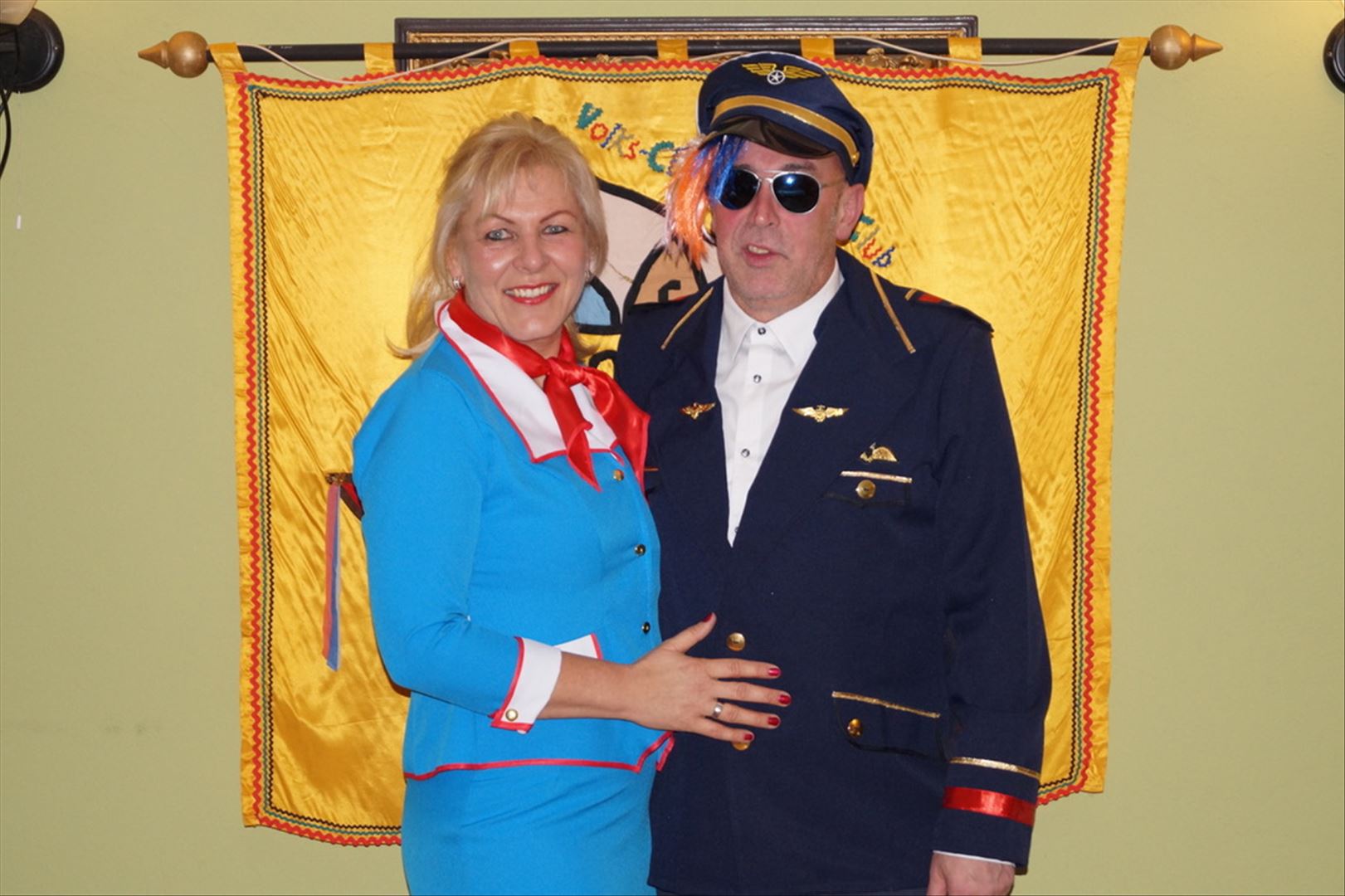 Die Fluggäste werden natürlich strengstens kontrolliert am Check-In und siehe da, die Nonne war vorbildlich verschlossen. Ein Schelm wer schlechtes denkt, als der gesamte Elferrat den Schlüssel hoch hielt, der die Unschuld verschloß. Und Blind fliegt es sich am sichersten. Eine ausführliche Erklärung der Sicherheitsmaßnahmen ließ so manche Träne fließen. Was für Talente bei uns schlummern.