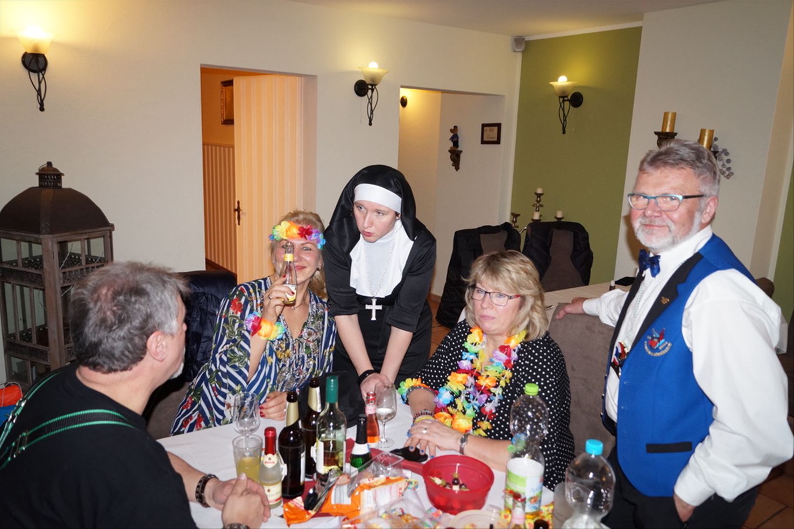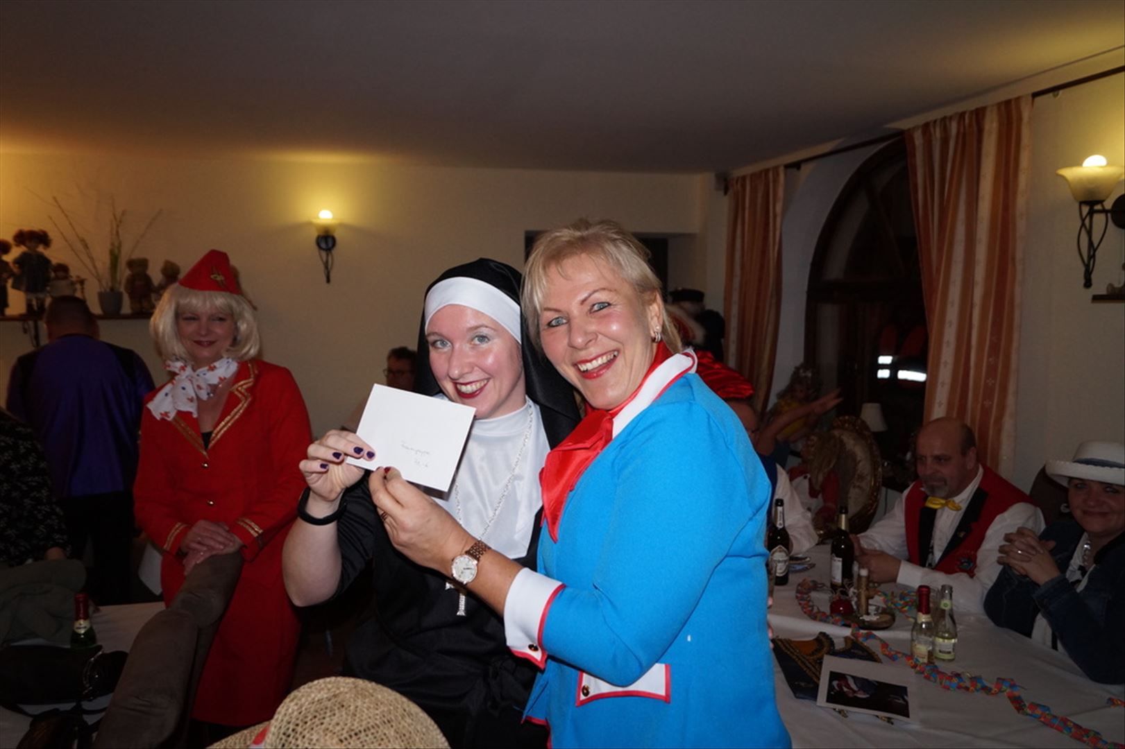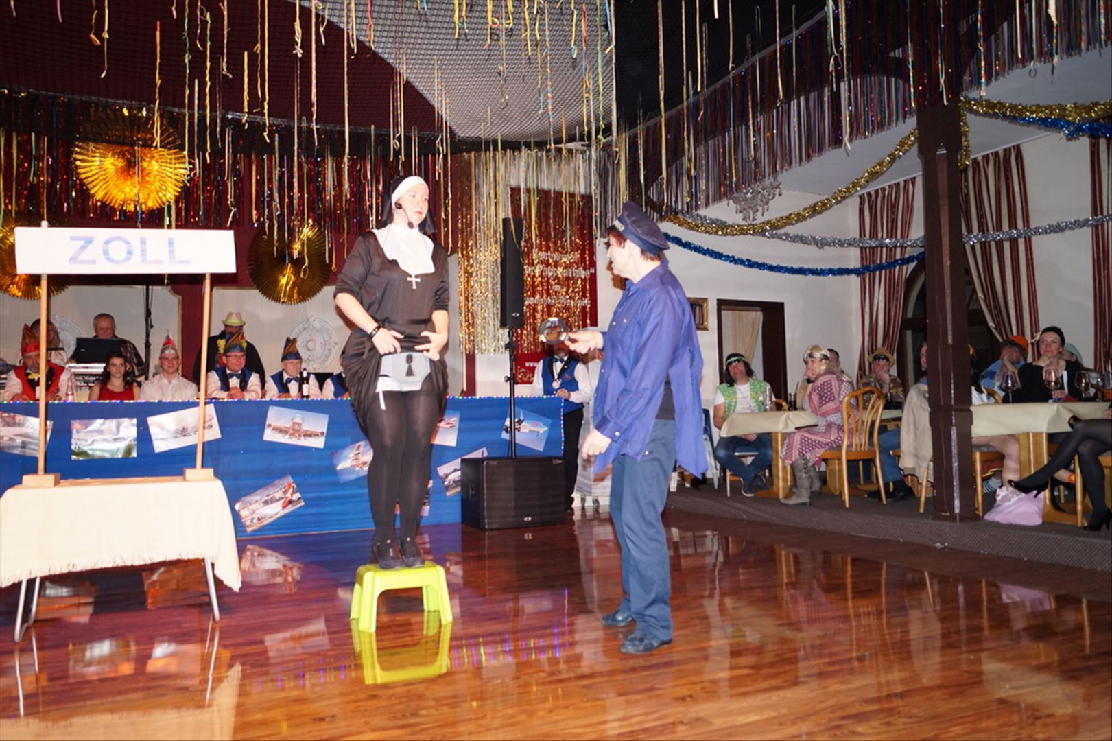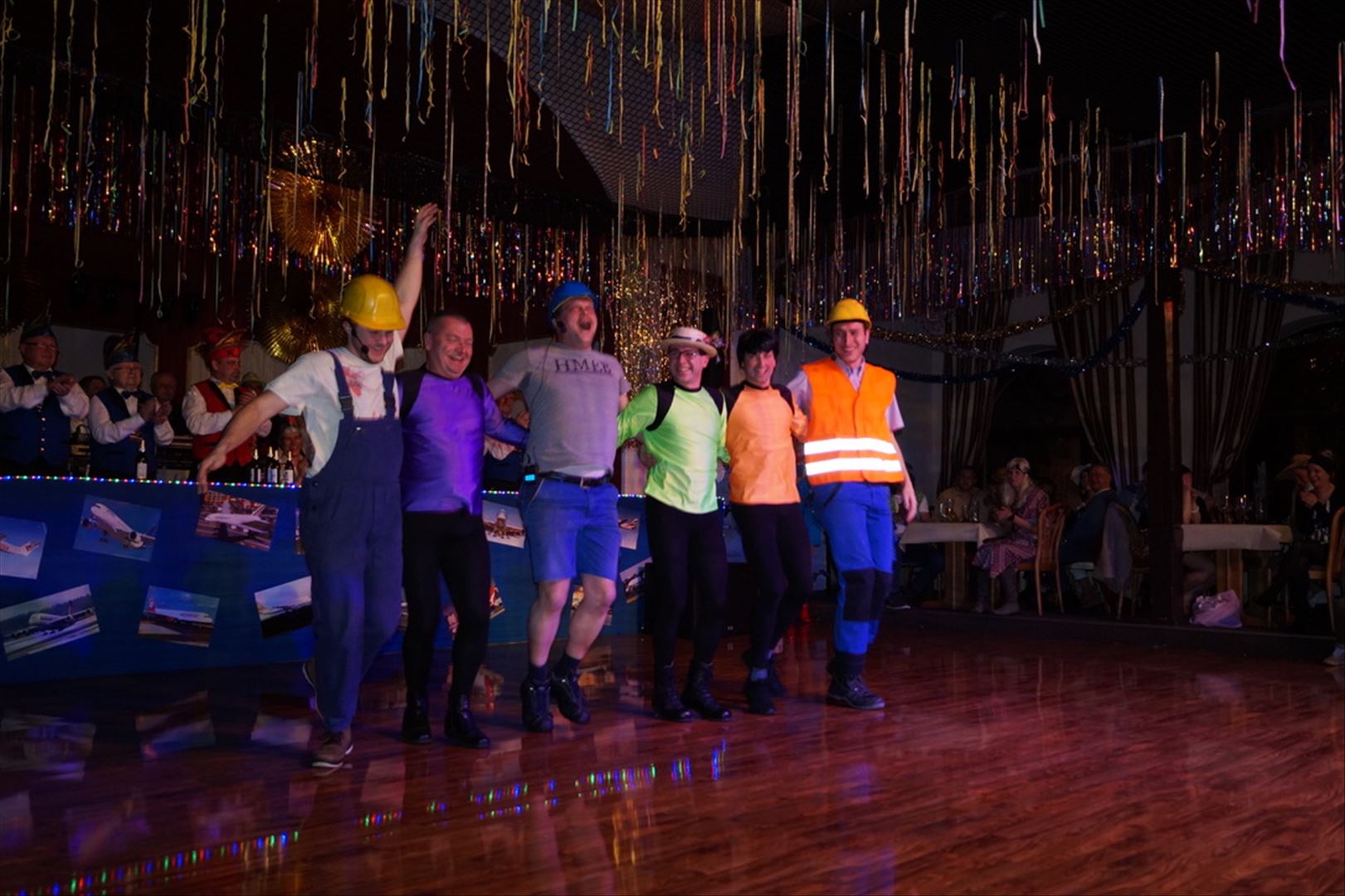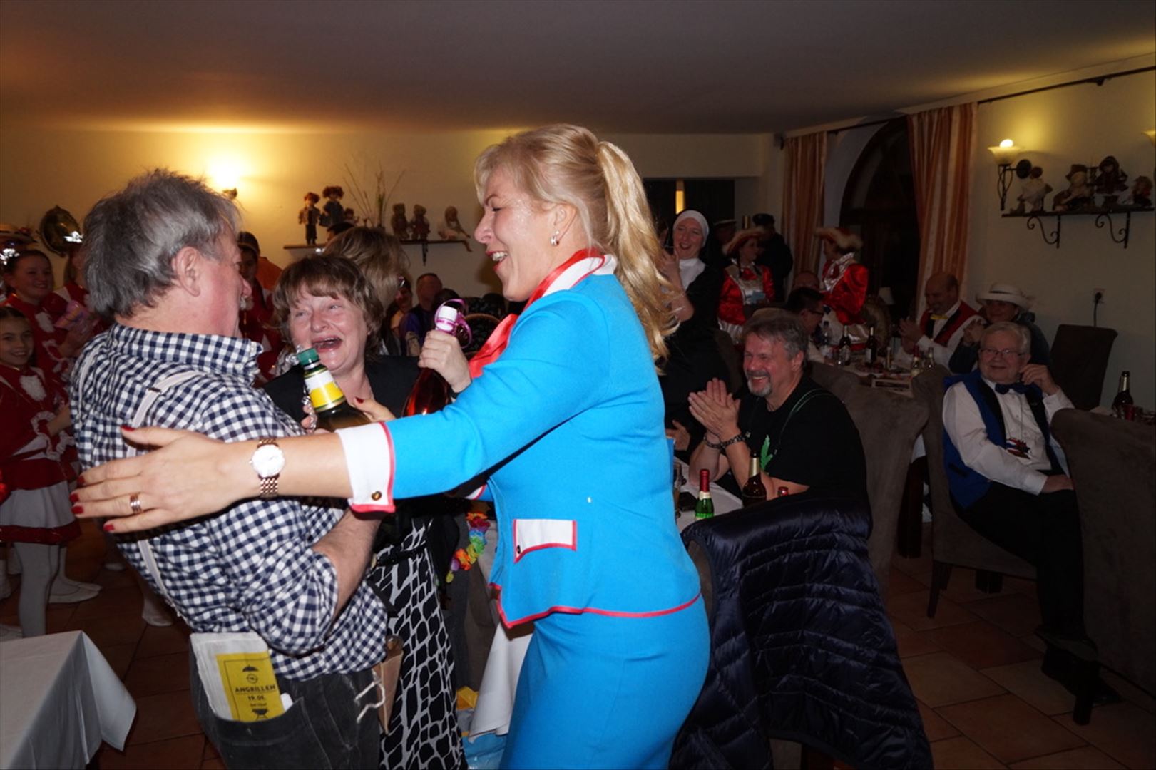 Die Fluggäste werden natürlich strengstens kontrolliert am Check-In und siehe da, die Nonne war vorbildlich verschlossen. Ein Schelm wer schlechtes denkt, als der gesamte Elferrat den Schlüssel hoch hielt, der die Unschuld verschloß. Und Blind fliegt es sich am sichersten. Eine ausführliche Erklärung der Sicherheitsmaßnahmen ließ so manche Träne fließen. Was für Talente bei uns schlummern.