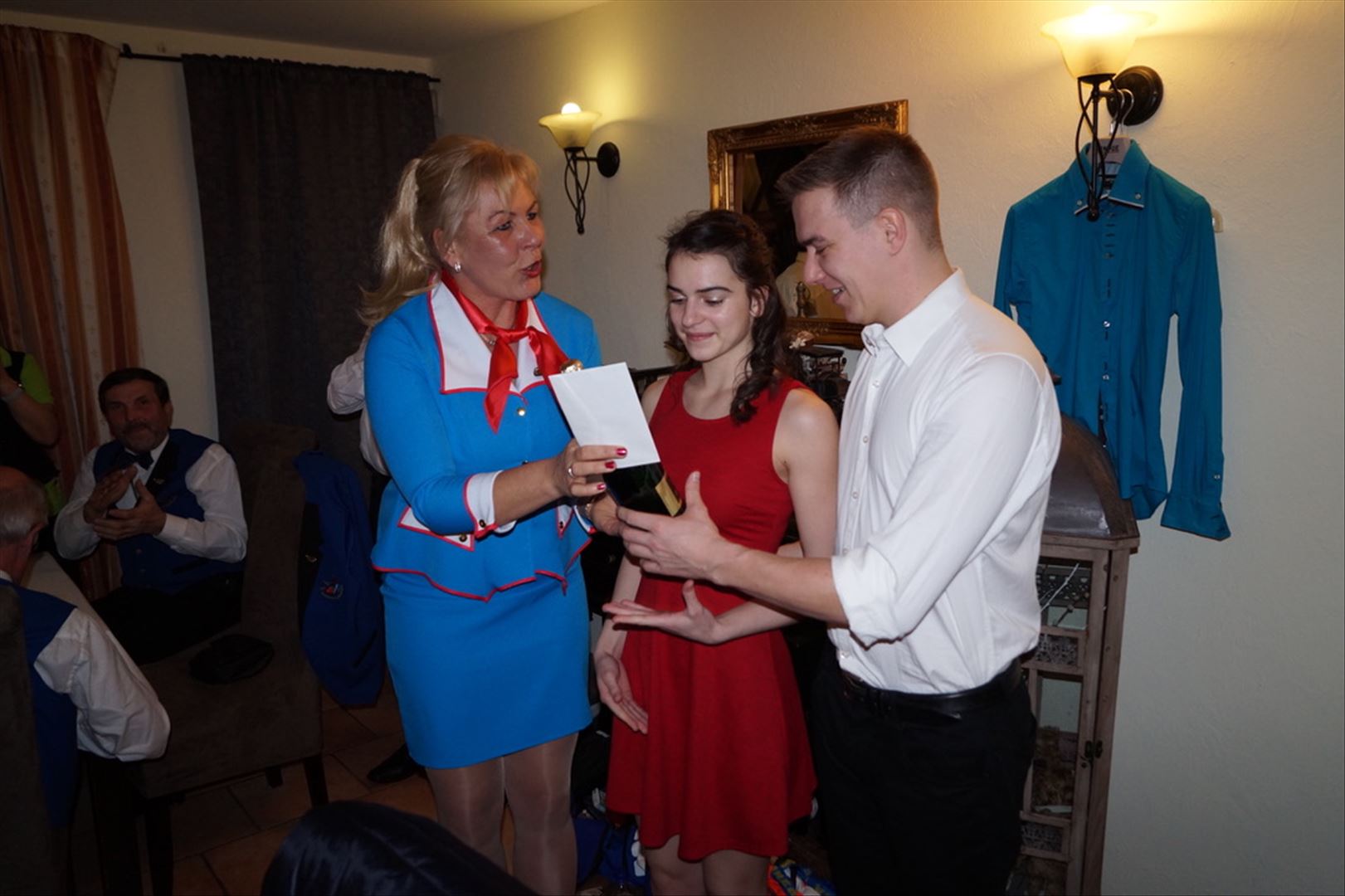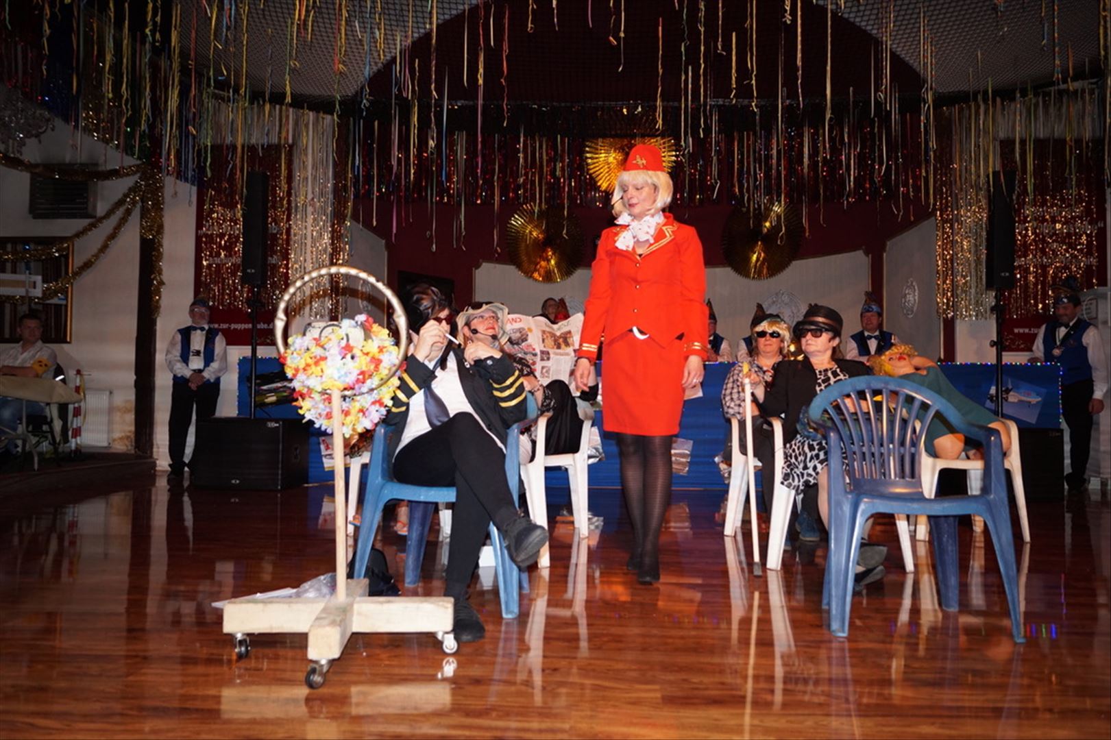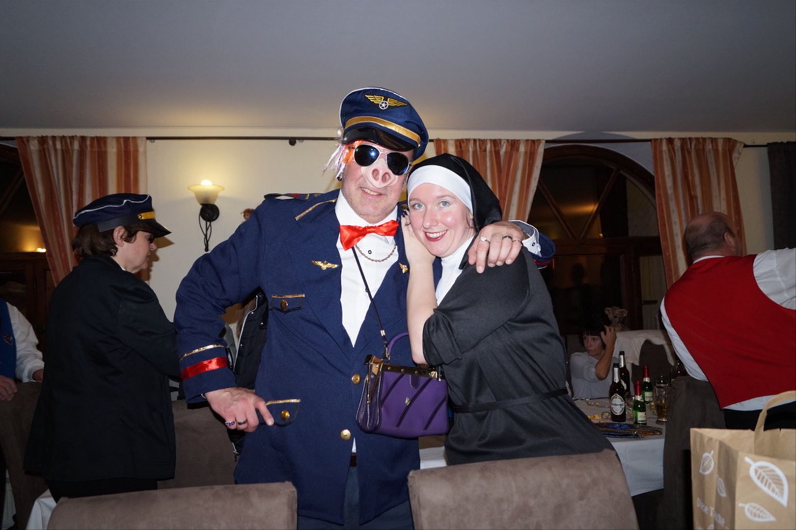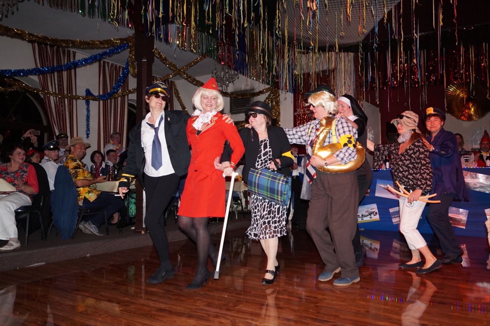 Die Fluggäste werden natürlich strengstens kontrolliert am Check-In und siehe da, die Nonne war vorbildlich verschlossen. Ein Schelm wer schlechtes denkt, als der gesamte Elferrat den Schlüssel hoch hielt, der die Unschuld verschloß. Und Blind fliegt es sich am sichersten. Eine ausführliche Erklärung der Sicherheitsmaßnahmen ließ so manche Träne fließen. Was für Talente bei uns schlummern.