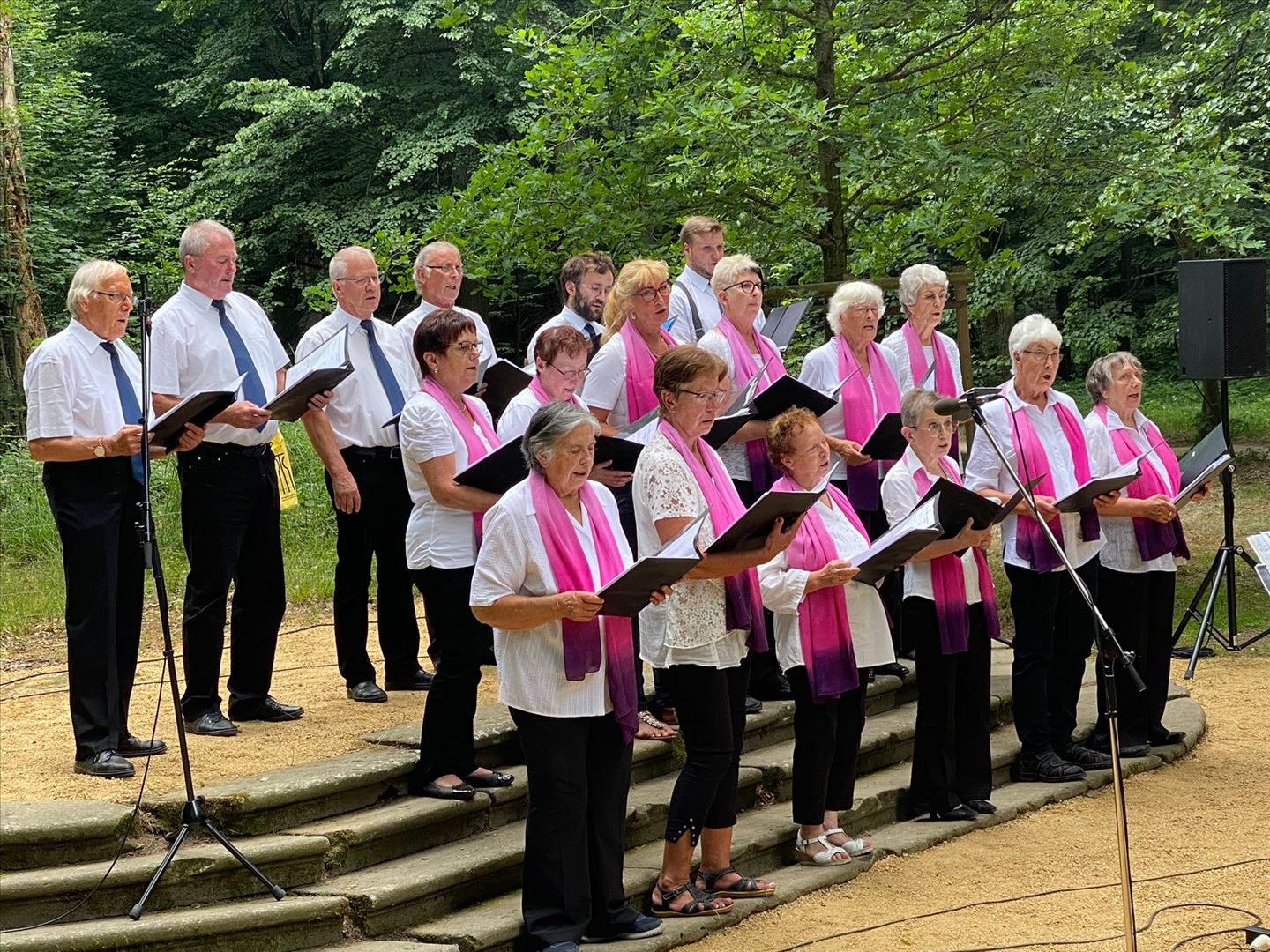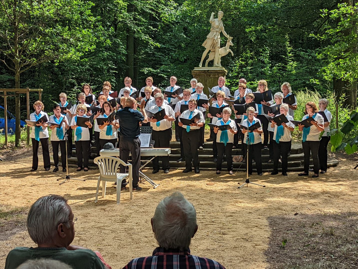 Ein Wetter wie im Bilderbuch, eigentlich schon fast zu heiß, erwartete uns und unser Publikum. Kurzweilige Lieder, bekannte und modernere boten wir unserem Publikum an. Es war ein wunderschönes Konzert und wir sind dankbar für dieses tolle Ambiente. Die Familie Müller-Röske stellt uns immer ihren schönen Schloßpark für diese Veranstaltung zur Verfügung.