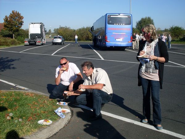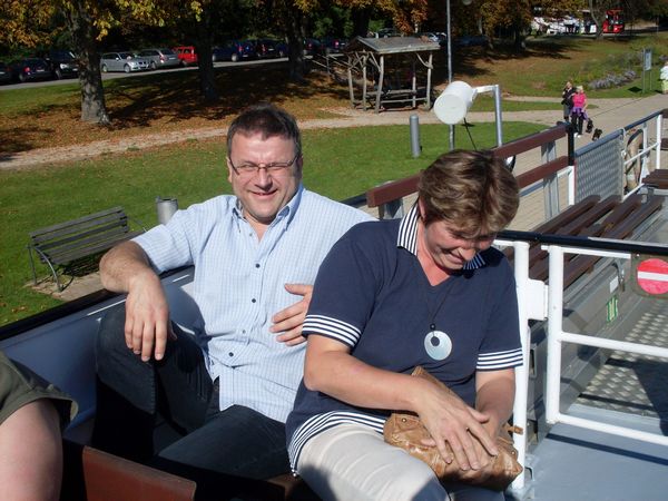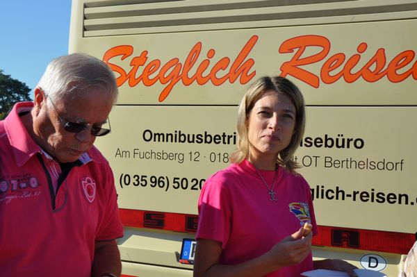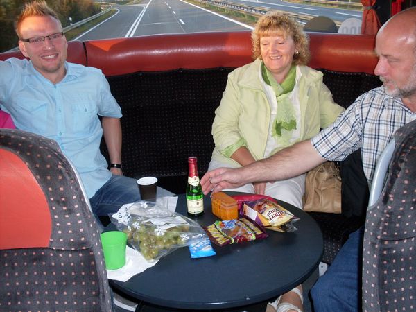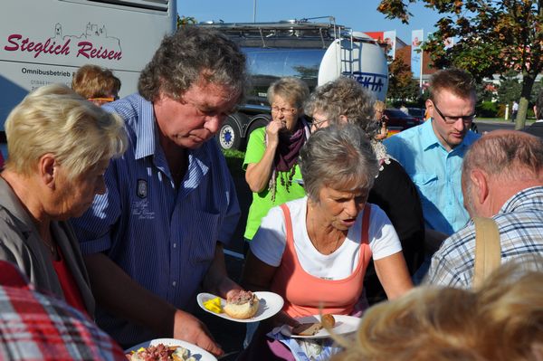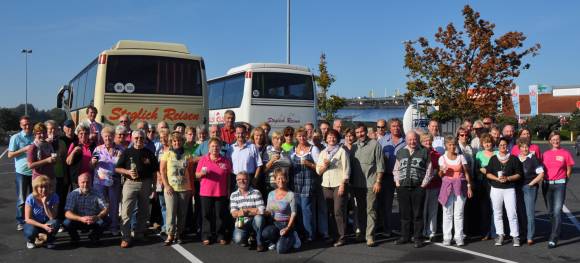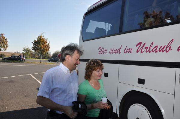Ich kann mich nicht erinnern, wann das letzte Mal solch ein Sommerwetter zum 1. Oktober gewesen ist. Auf jeden Fall gab es solche Tage nicht einmal im Sommer. Mit zwei Bussen von Steglich-Reisen ging es mitten in der Nacht (5.30 h) los. Und das gleich mit einer kleinen Panne. Auf dem Parkplatz sprang auf einmal der Bus nicht mehr an. Was nun? Kein Problem! Der zweite Bus fuhr an die Tankstelle und wappnete sich mit einem Starterkabel und schon ging die Fahrt weiter. Das kann ja heiter werden, dachten sich sicher einige. Aber das war wirklich das einzigste technische Problem. Eher hatten wir mit der sehr rasanten Fahrweise des "kleinen Frank" zu tun.