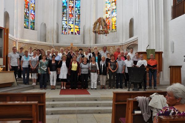 Am Nachmittag ging es dann nach Bad Doberan zum eigentlichen Konzertnachmittag zusammen mit dem Lehrerchor. Der Chorleiter hatte echt Angst, dass zu wenige Menschen in das Kulturhaus kommen könnten, weil es ja so ein tolles Sommer- und Badewetter war. Aber nichts da. Es war bis zum letzten Platz ausgefüllt. Eine tolle Anerkennung der Vorbereitungsarbeit dieses Chores und auch für alle Sängerinnen und Sänger beider Chöre. Es war ein rundum toller Nachmittag und der Wunsch nach einem erneuten Treffen war sehr herzlich.