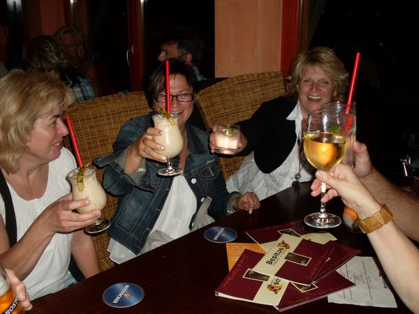 Am Abend sollten wir uns "schick anscheuseln" stand auf dem Reiseblatt. Da ging es zum gemeinsamen Abendessen und Tanz. Das Motto "Wenn der Hein mit dem Schifferklavier…" Gut gut, dass wir selbst viele Lieder kennen und dem Abend so eine etwas abwechslungsreichere Note gaben. Bis weit nach Mitternacht hielten wir es dann noch bei Cocktail und Geschnatter aus.
