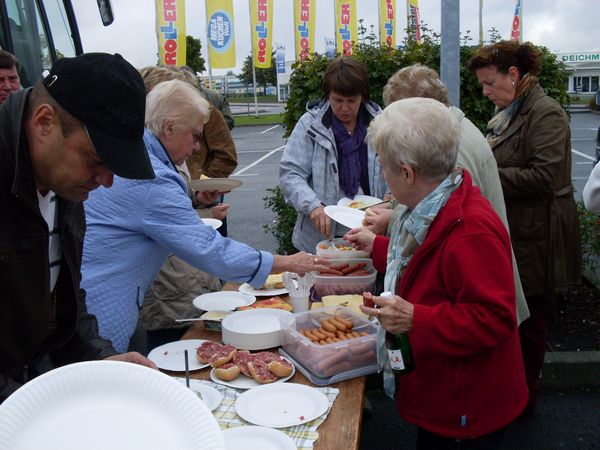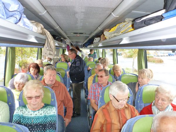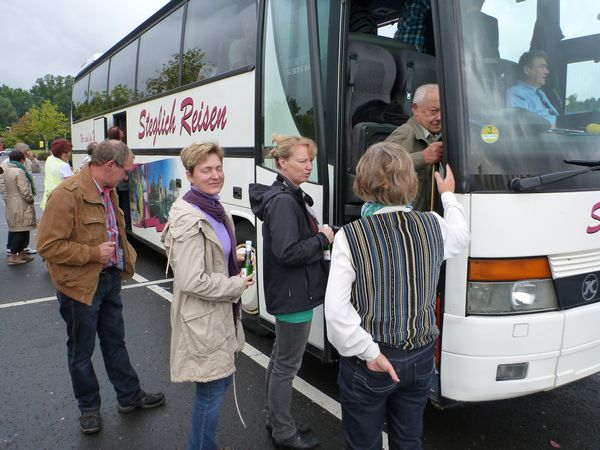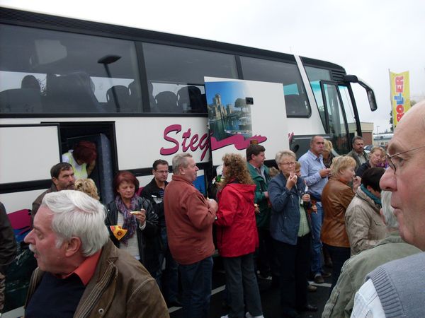 Eine Blaufahrt war angesagt. Und es wurde lange spekuliert, wo es denn hingehen würde, denn in den Vorinformationen tauchten Begriffe wie Personalausweis, keine Flüssigkeiten in der Handtasche und Nüchtern auf. Erst fing das Wochenende ja nicht ganz so gut an. Nieselregen und dann mussten wir noch 6 Reisende umbuchen in einen VW Transporter. Aber das tat der guten Stimmung keinen Abbruch. Man sollte immer das Beste aus Allem machen und das taten wir.