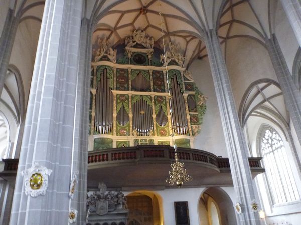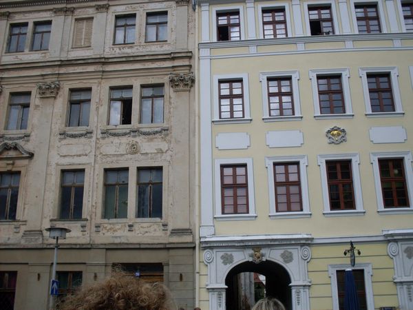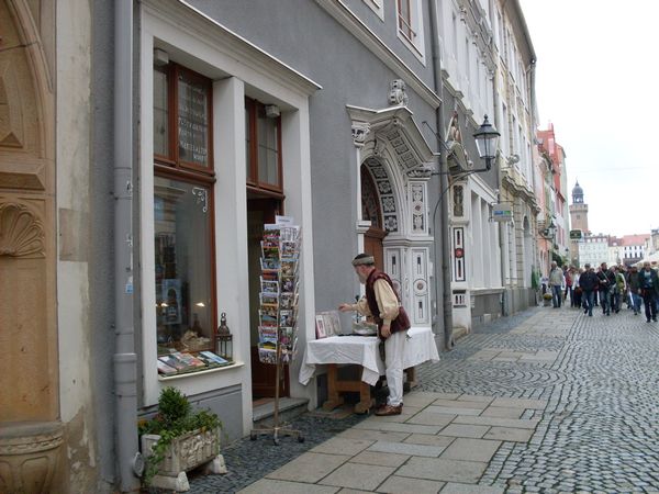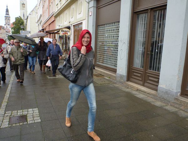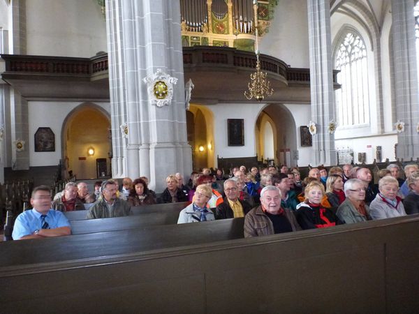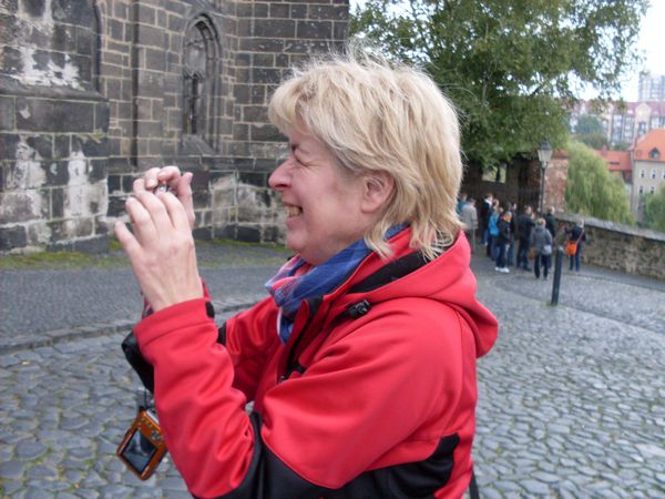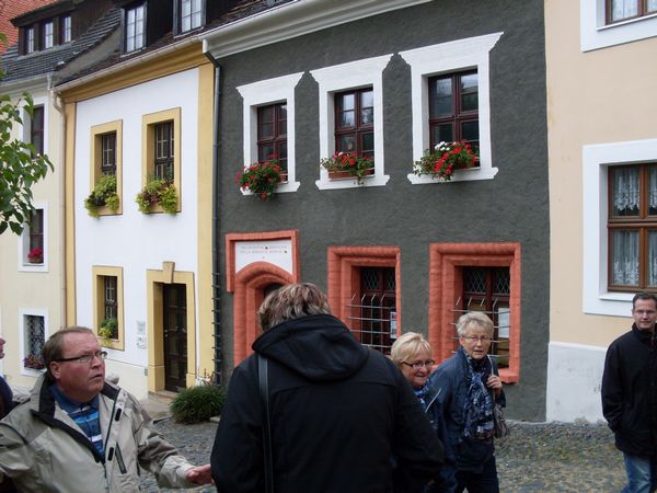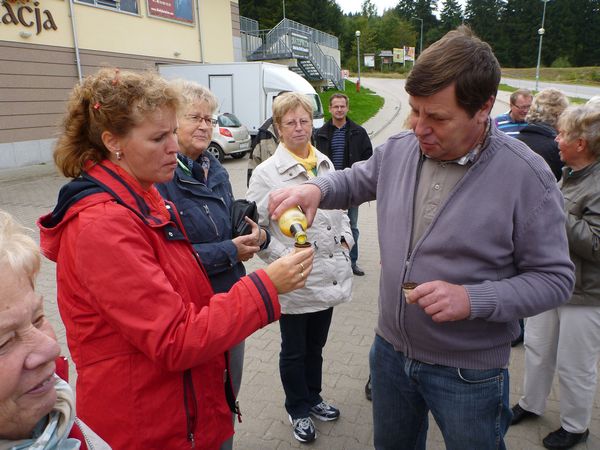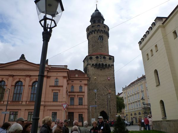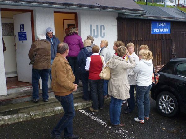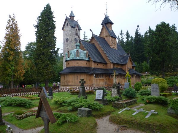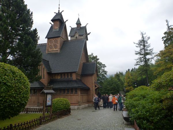 Görlitz, ja und nein. Als Erstes wollten wir unser obligatorisches Frühstück unterwegs machen, aber das musste leider wegen des starken Regens ausfallen. So fuhren wir eben bis Görlitz durch und wurden belohnt und haben auf dem Parkplatz eines großen Einkaufscenters Halt gemacht. Außer lecker Brötchen mit herzhaften und süßen Sachen gab es noch gute Getränke und für Karsten beim Ausverkauf im Praktiker eine goldene Türklinke. Nach der Stärkung ging es dann in zwei Gruppen zu Fuß durch Görlitz. Es ist wirklich toll, was dort in den letzten Jahren verschönert und gebaut wurde. Dem Stadtrundgang schloss sich dann ein Besuch in der St. Peterkirche an, wo wir eine ausführliche Erklärung über die dortige Sonnenorgel erhielten. Ein zünftiges schlesisches Mittagessen stärkte uns für den nächsten Tagesabschnitt, denn wir waren noch nicht an unserem Endziel angekommen. Das war nämlich Karpacz im Riesengebirge. Leider machte uns auch hier das Wetter einen Strich durch die Rechnung und wir konnten die schöne Landschaft kaum sehen. Gut, dann eben an diesem Tag geballte Kultur. Wir erklommen die Höhe und konnten noch eine Führung durch die Kirche Wang erleben. Eine ganz besondere Holzkirche, die einst in Norwegen stand und vom preußischen König Friedrich Wilhelm IV 1842 erworben wurde und in das Riesengebirge überführt wurde.