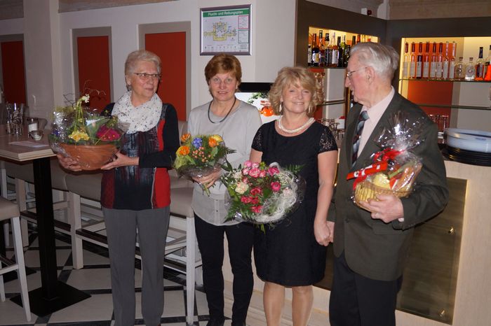 Stolze 50 Jahre im Gesangverein sind Isolde Frank und Siegfried Klötzer, das ist wahrlich etwas Besonderes. Aber noch unglaublicher ist die Zugehörigkeit von Herrn Gunter Scheunpflug. Bereits seit 70 Jahren hält er dem Chor die Treue. Dafür danken wir ihm von ganzen Herzen. Zu guter Letzt bedankten sich die Vorstandsmädchen bei ihrem langjährigen Mitstreiter Karsten Glöss für die über 20jährige Tätigkeit im Vorstand mit einem geschnitzten Hahn, weil er die ganze Zeit unser Hahn im Korb war. Unsere Idee hat freundlicherweise Bernhard Teuber verwirklicht, dafür einen lieben Dank.
