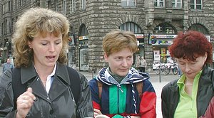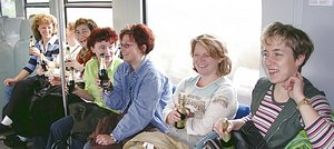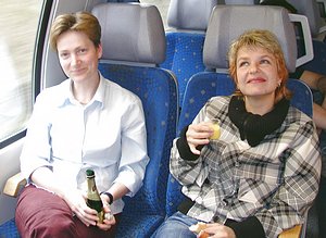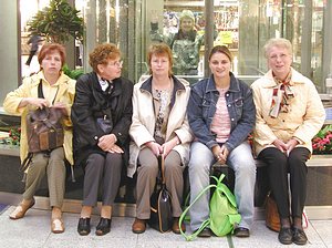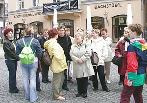 Anlässlich des Frauentages machten wir Frauen des Gesangvereins am 24.04.04 unseren traditionellen Ausflug. Da viele von uns schon lange nicht mehr dort waren ging es dieses Jahr nach Leipzig. Mit dem teilweise überfüllten Regionalzug (manche fanden nur auf Notsitzen Platz) fuhren wir am "frühen" Morgen nach Leipzig. Dort angekommen inspizierten wir zunächst den Hauptbahnhof, der in etwa der Altmarkt-Gallerie in Dresden gleicht. Einige bummelten durch die zahlreichen, zum Teil sehr teuren, Geschäfte und andere wiederum gingen zum Casting für die Olympia-Werbung "Leipzig 2012" (wir wollen doch hoffen, dass wir dann auch bundesweit auf den Plakaten zu sehen sind!).
