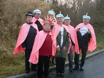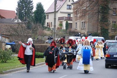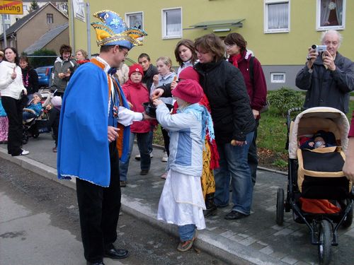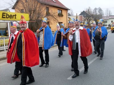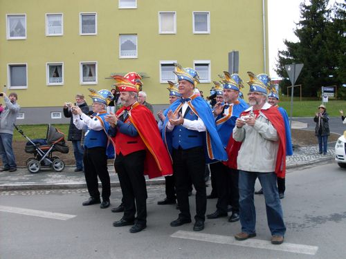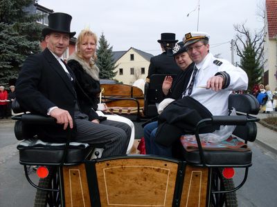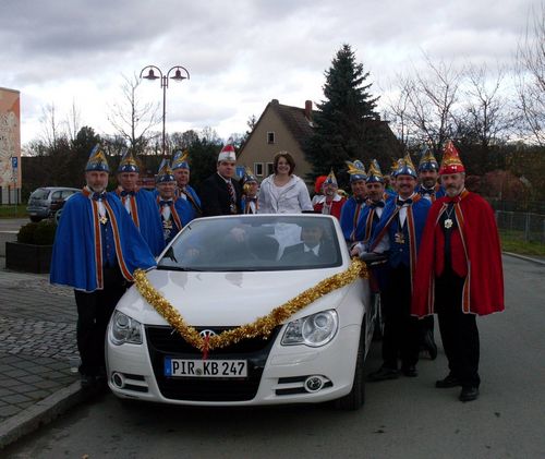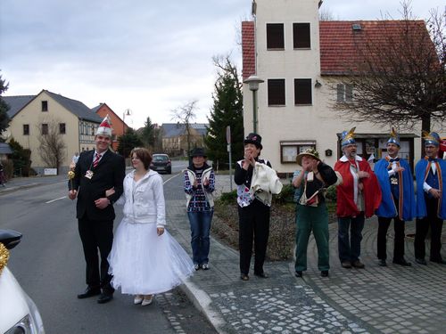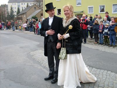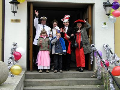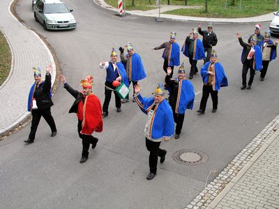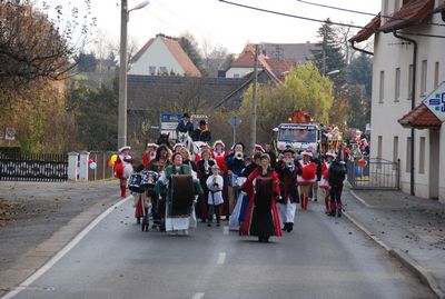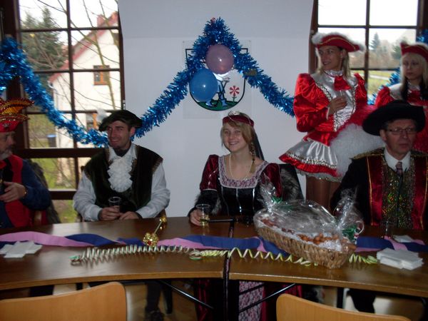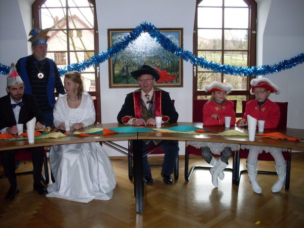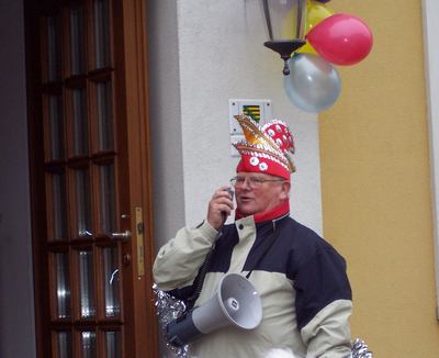 Mit einem dreifachen "Vivat Vivat Wesnia" starteten wir am 11.11.2006 in die 5. Jahreszeit. Weit über 100 Mitwirkende gestalteten in Schaubildern aus 25 Jahren Chorfasching den großen Karnevalsumzug zum Dürrröhrsdorfer Rathaus. Pünktlich um 11:11 Uhr nahm unser Prinzenpaar, stellvertretend für alle Narren des Gesangvereins, den Rathausschlüssel in Besitz. Erst am Aschermittwoch 2007 geht er wieder an unseren Bürgermeister Jochen Frank zurück. Und danach ging`s zum Feiern ins Orts- und Vereinszentrum. Dort wartete bereits die Besatzung des Bürgermeisters mit Sekt und Pfannkuchen auf die Narren. Mit Unterhaltung durch die Hohnsteiner Blaskapelle und die Diskothek Harmonie war dieser 11.11. kaum an Stimmung zu überbieten. Den Abschluss an diesem Tag bildete ein Feuerwerk aus vielen "Wunderkerzen-Luftballons". Freuen wir uns also auf die neue Karnevalssaison und die damit verbundenen Faschingsveranstaltungen, wie gewohnt im Gasthof Stürza.
