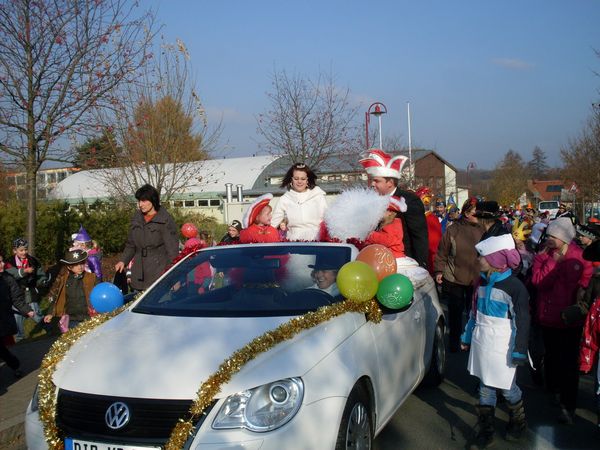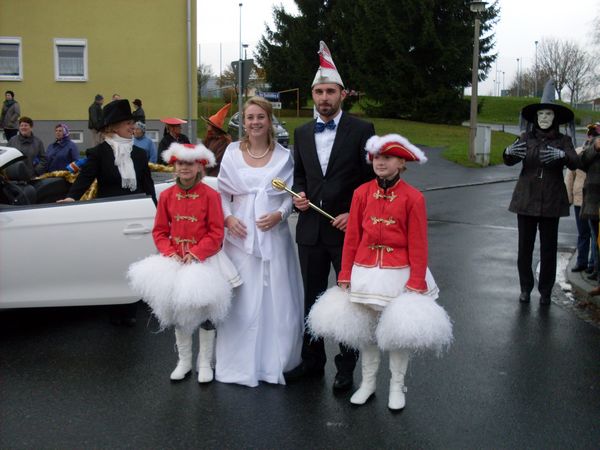 In diesem Jahr saß in der Kutsche unser junges Prinzenpaar, was im Februar so Hals über Kopf in unser Faschingsleben stolpern musste. Nun schon souverän stürmten sie über die Feuerwehrleiter das Rathaus und nahmen dem Bürgermeister den Rathausschlüssel ab, um für die nächste Saison in unserer Gemeinde zu regieren.