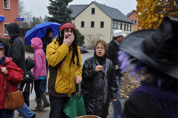 Es war eine Zitterpartie in diesem Jahr, denn zwei Tage vorher kündigte sich ein großer Sturm mit viel viel Regen an. Aber Gott sei Dank, machte dieses Mal Dürrröhrsdorf seinem Namen alle Ehre und es blieb trocken. Der Wind pustete zwar der kleinen Hexe etliche male den Hut vom Kopf, aber sie nahm es mit Humor.