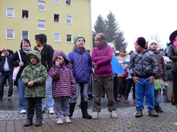 Selbst der beginnende Regen tat der guten Stimmung keinen Abbruch und erfreulicherweise auch den Freunden des närrischen Treibens am Wegesrand nicht.