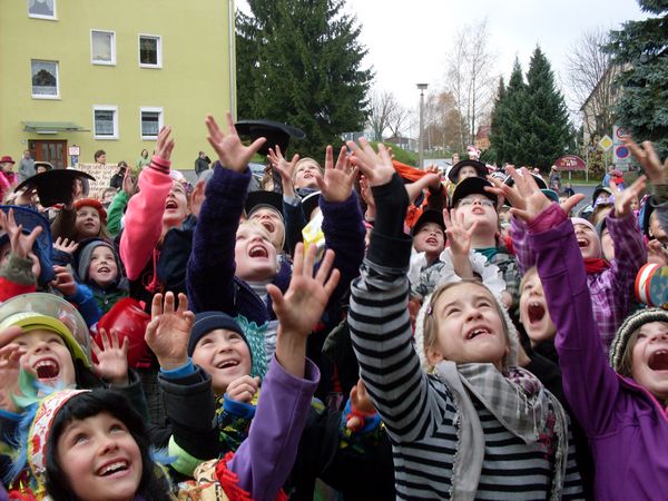 Mit einem bunten Bombonregen wurden die Schülerinnen und Schüler der Grundschule entlohnt, weil sie ja auf Unterricht verzichten mußten. Lieben Dank, Frau Direktoren dafür. Ein Dankeschön auch an die Bäckerei mehnert, die wieder leckere Quarkkrapfen uns zur Verfügung stellte.